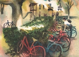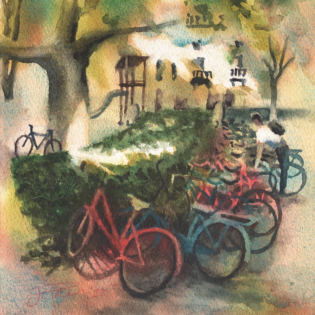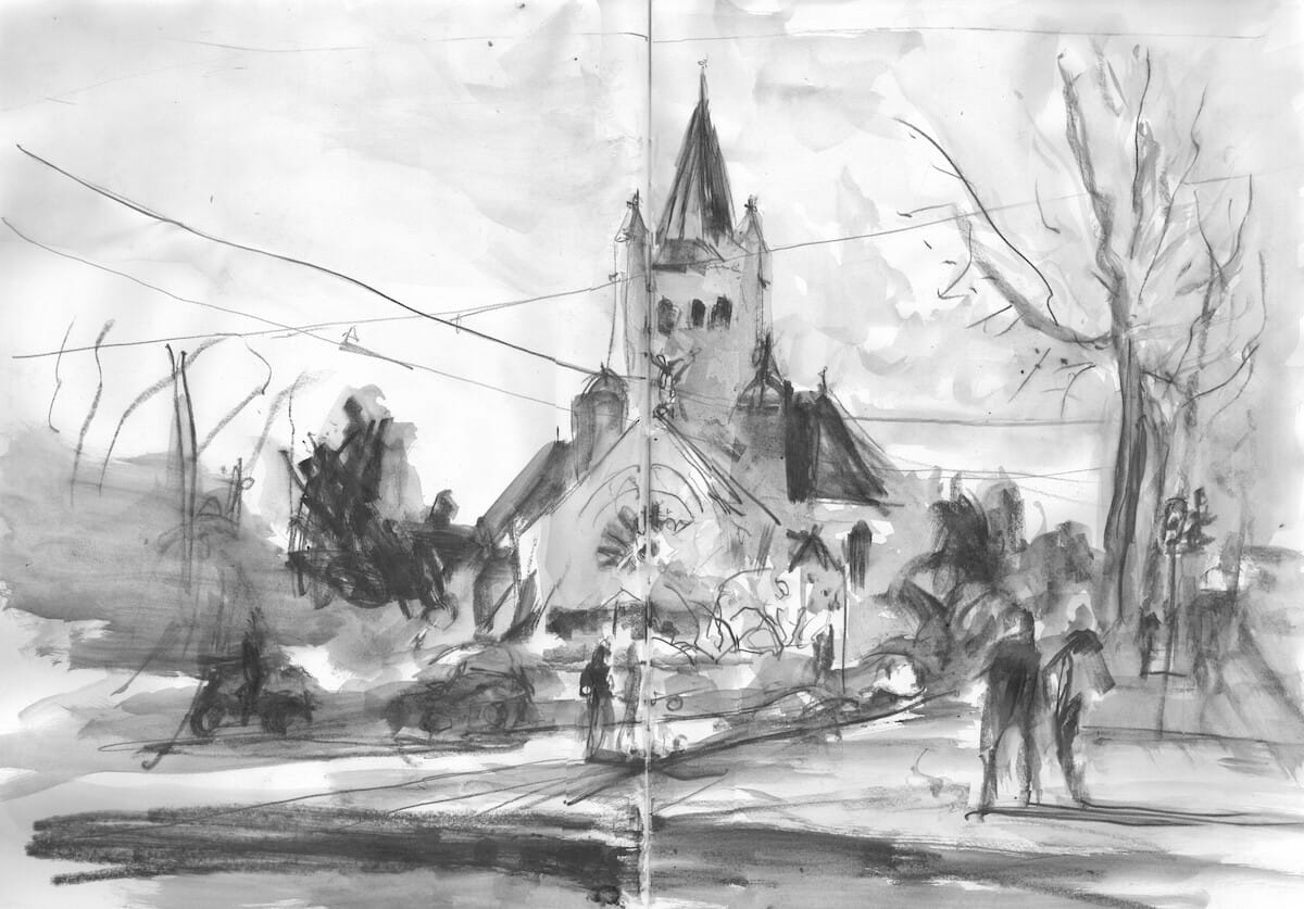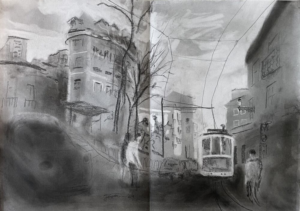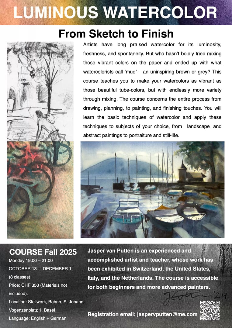 Jasper van Putten is a Dutch artist and art historian who has lived in the United States and currently resides in Switzerland. He explores his urban environment and landscapes in watercolors, drawings, and prints, as well as mixed-media works that combine these techniques on paper. While many of his works are interpretations of our spatial surroundings, the COVID-19 crisis of 2019–2020 and, more recently, the genocide in Palestine have gradually transformed the content of his art to address political and social themes.