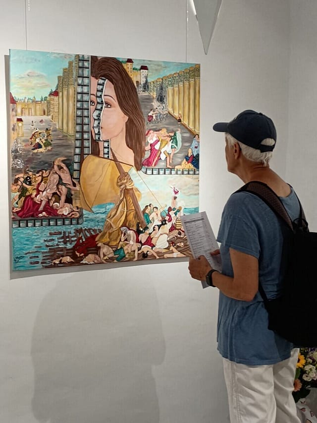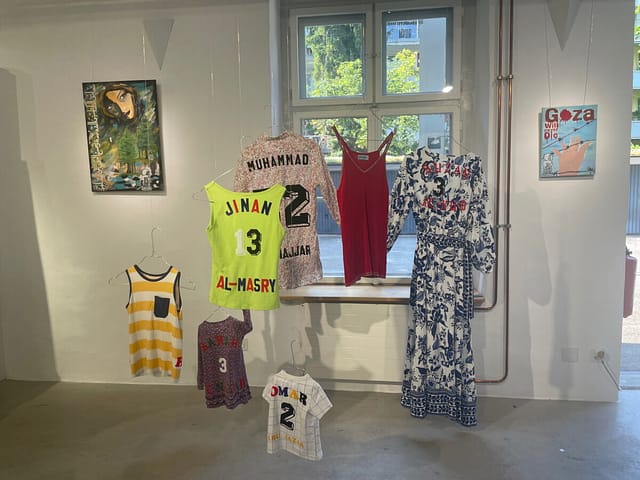 Art for Gaza is a group of artists living in and around Basel. Deeply dismayed by the art world’s silence on the genocide in Gaza, we organize an annual group exhibition featuring art about Palestine, by both Palestinian and non-Palestinian artists. The photos are from our first exhibition, GENOCIDE COMES AS NO SURPRISE, in June 2025.