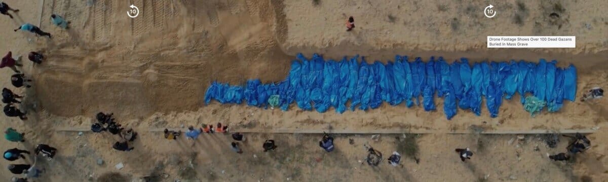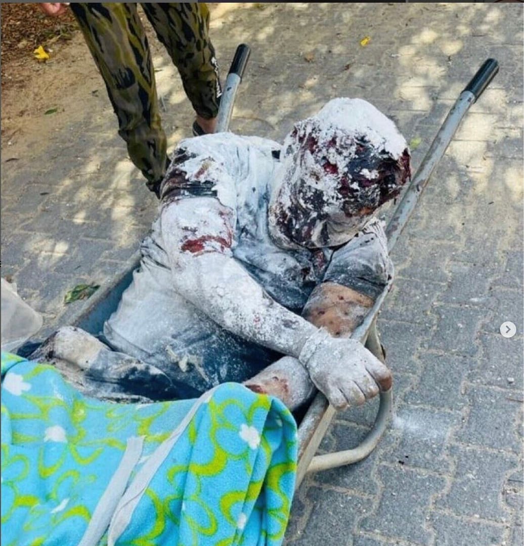 In the genocide that followed in the 19-months and counting after October 7 2023, the Israeli Army frequently distributed leaflets to Gazans with a map and a QR code, that would guide them to so-called “Humanitarian Safe Zones.” The QR code on the depicted leaflet (left) opens this web-page with a few cryptic instructions (right). Confusingly, the Arabic text only says: “The israeli defence force distributes a list with block numbers to guide the residents of Gaza to clear the areas.” Once in these ‘safe zones’ Gazans were generally mercilessly bombed with more brutal force than in the places they had left.