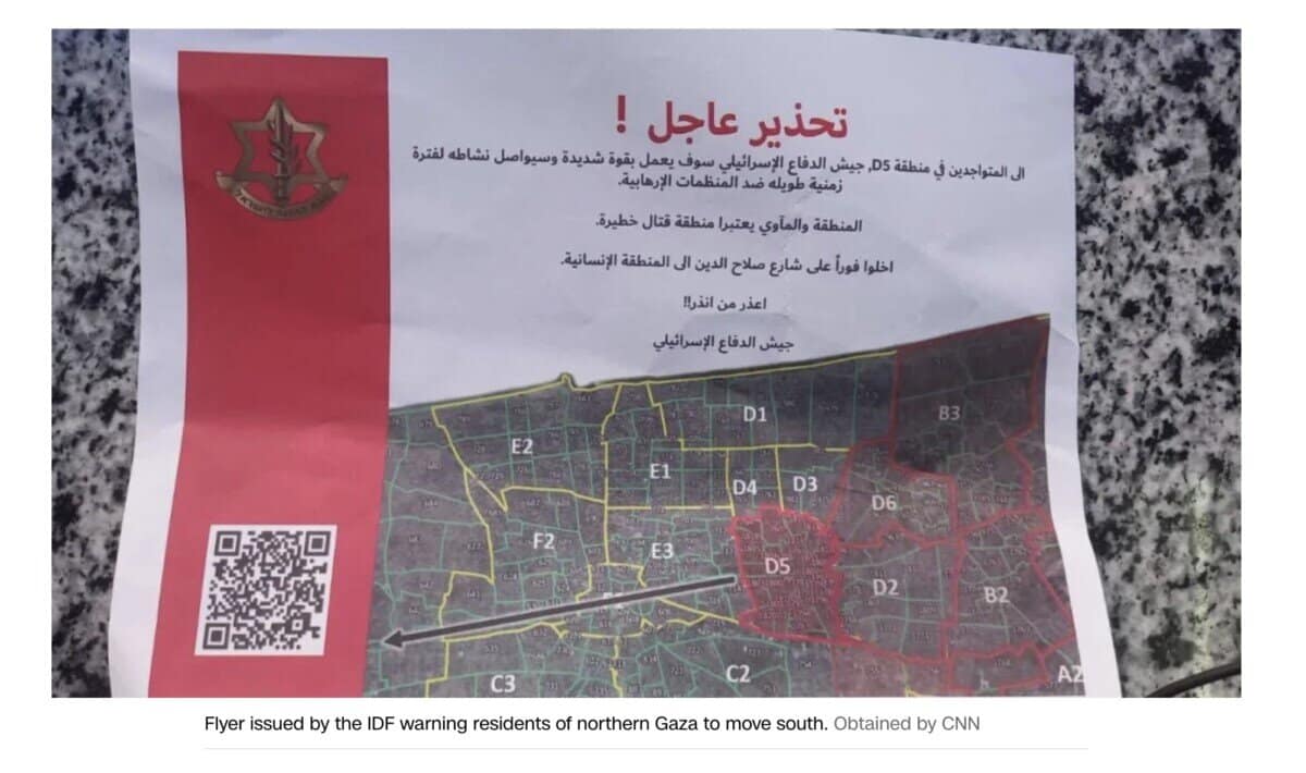 Many of these flyers with maps and QR codes have been catalogued by Gaza Maps. The flyer shown here was published by CNN in one of the few mainstream media mentions of this practice.