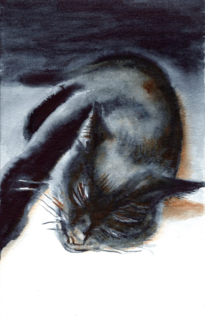 Poppy Resting, watercolor, 5 x 8 inch, 2018