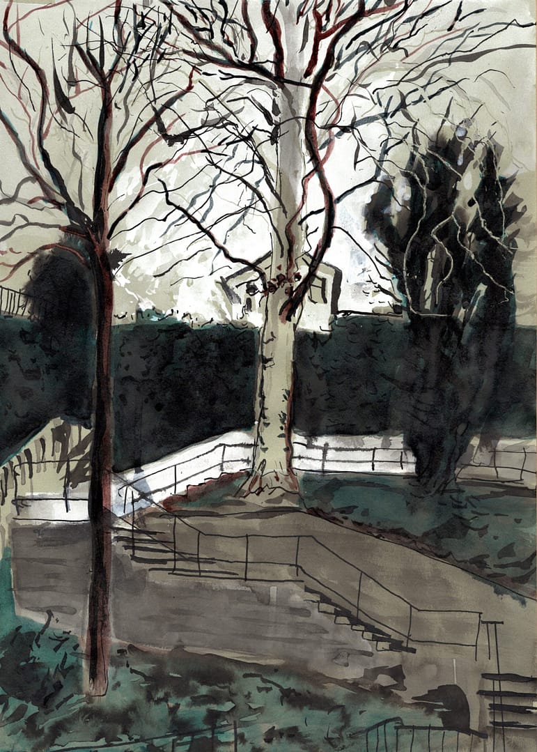 Ink on green paper, 42 x 29.5 cm, 2021
