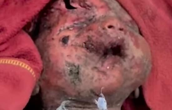 Maisra Fadl Abu Al-Auf Born and Martyred in the Genocide Lies in his Martyred Father’s Lap