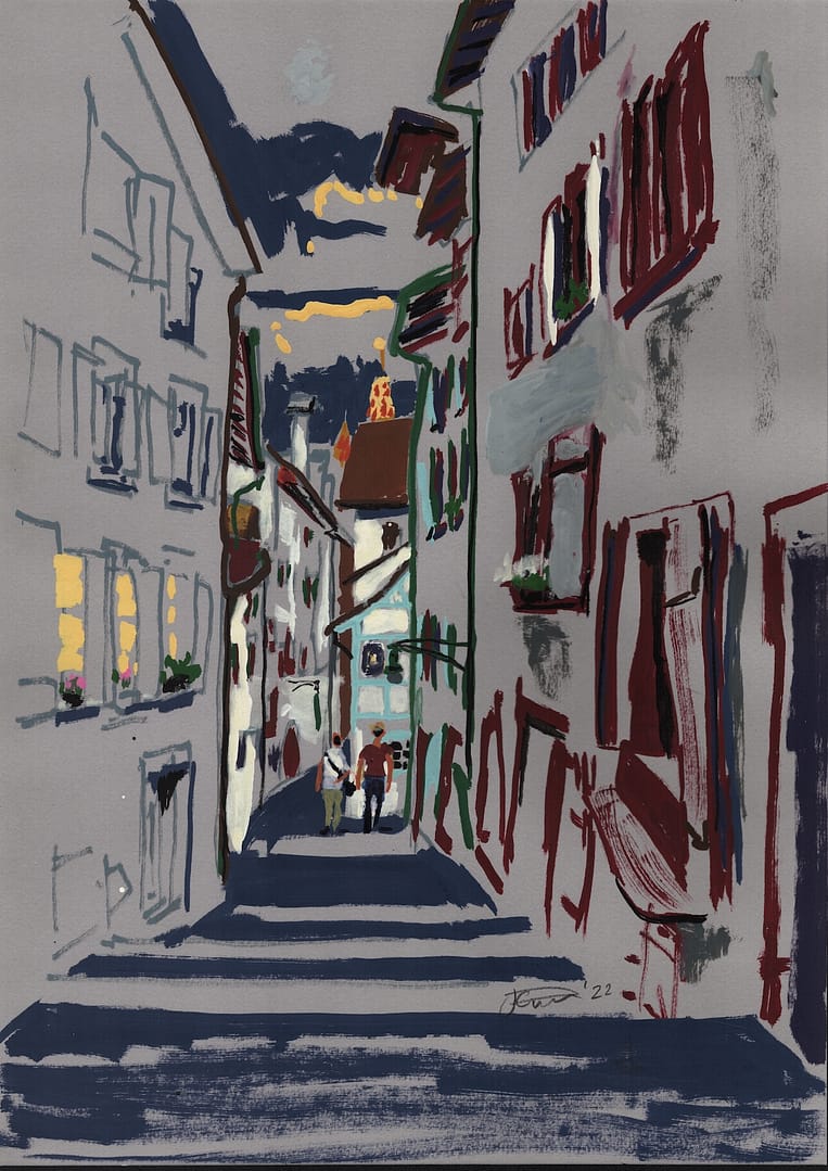 Basel Bird’s-Eye-View 1, watercolor, 45 x 66 cm, 2023...