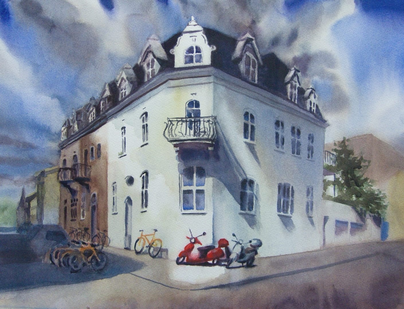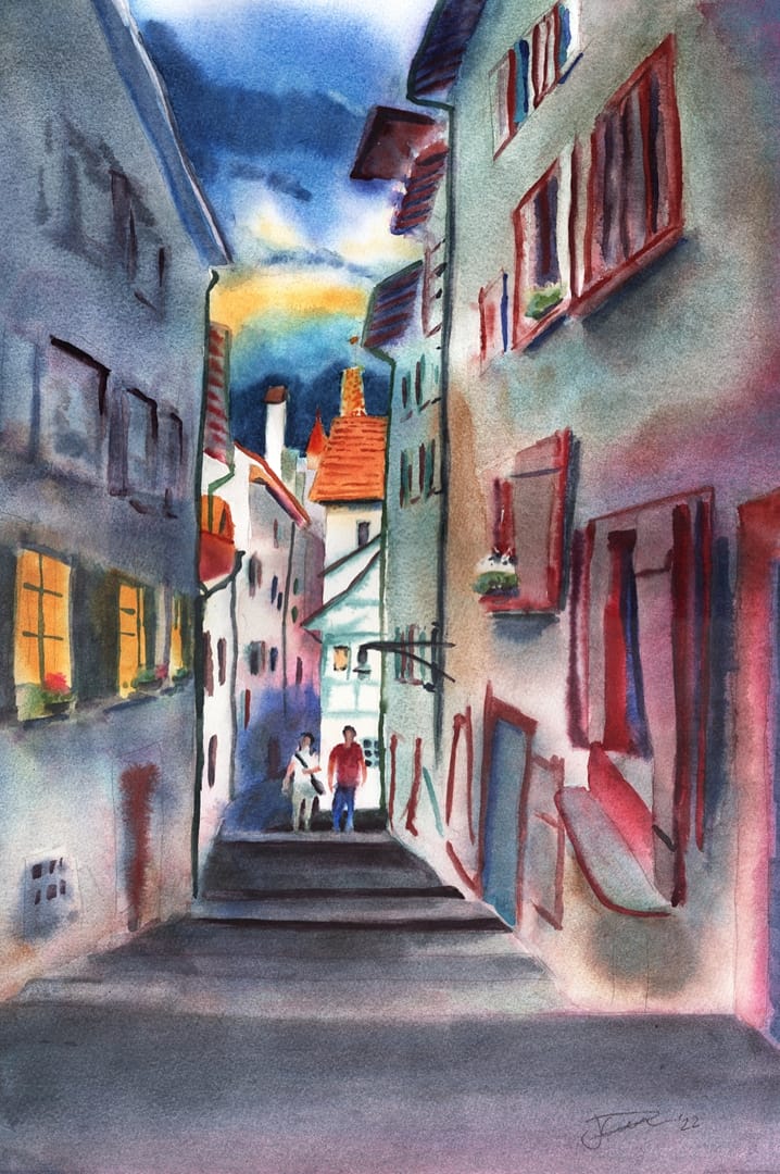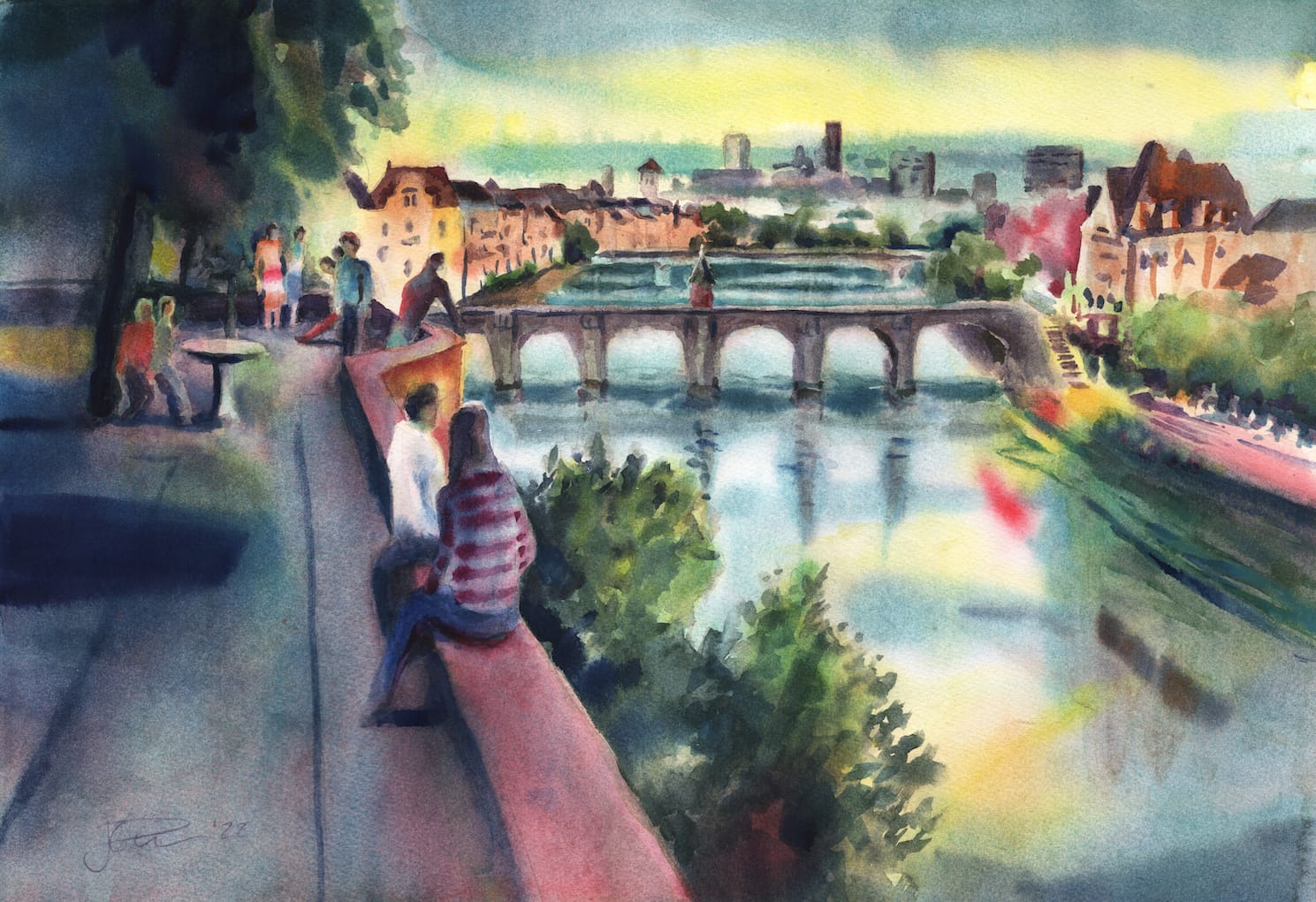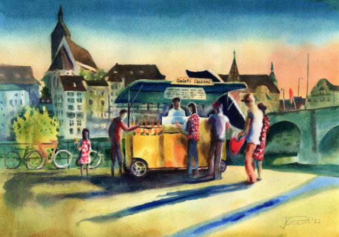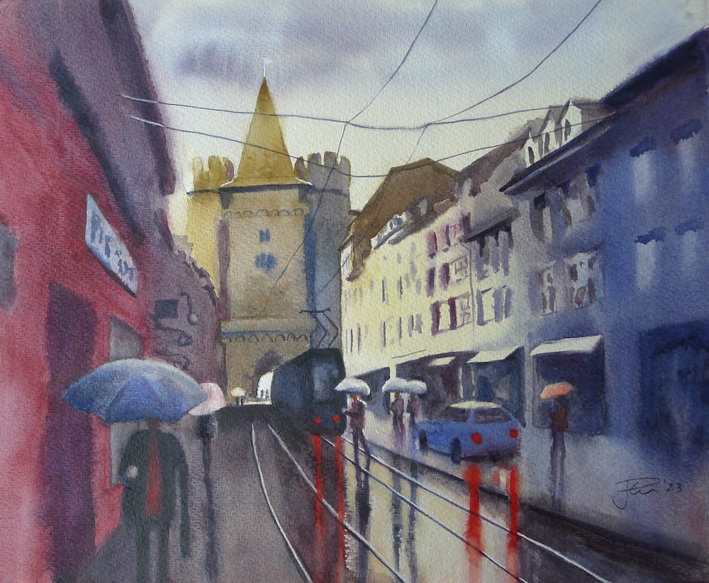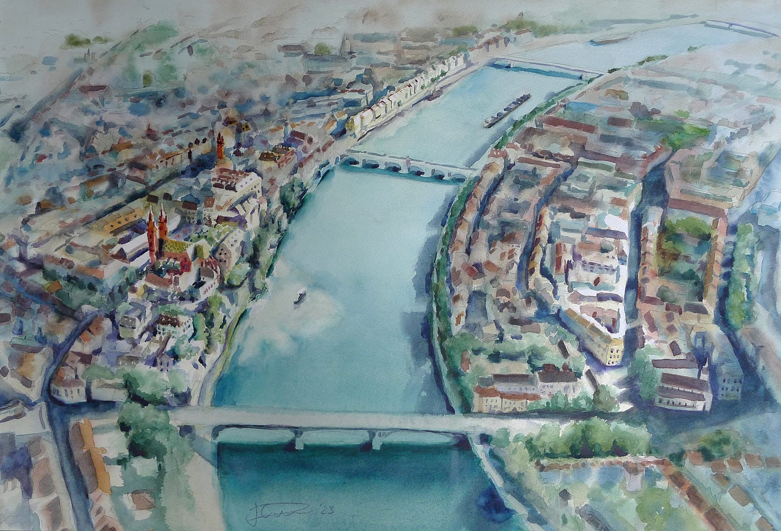 Basel Bird’s-Eye-View 1, watercolor, 45 x 66 cm, 2023...