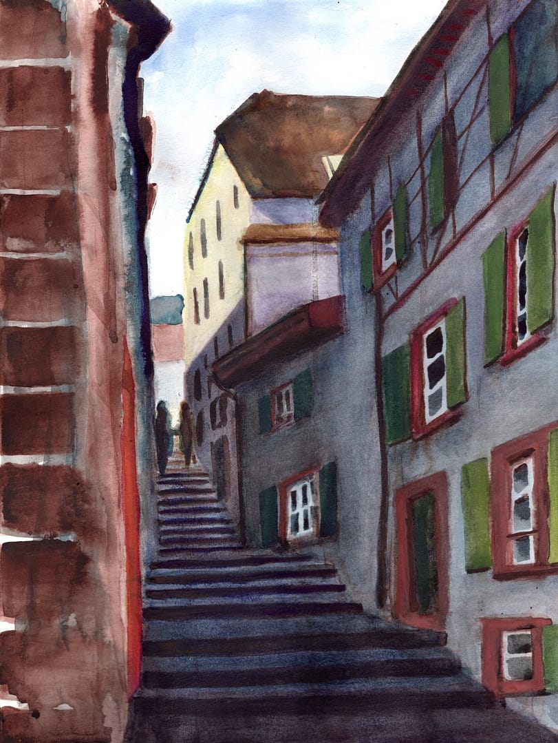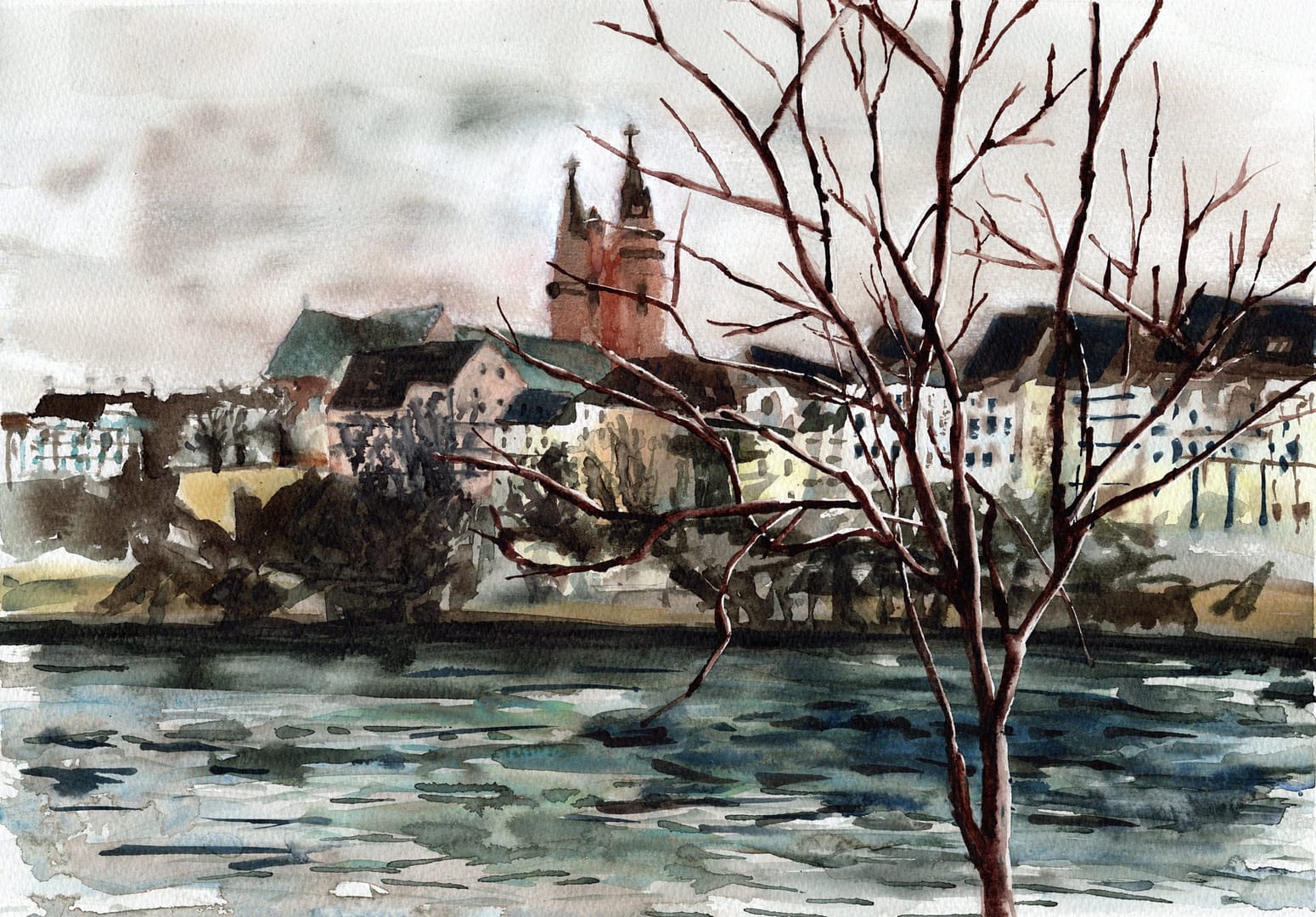 Watercolor on light grey paper, 28 x 40.5 cm (11 x 15.9 inch), 2021...