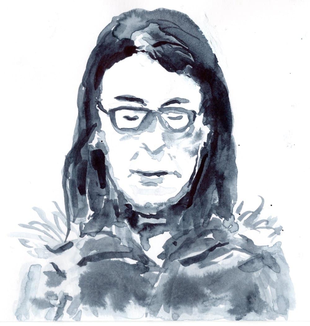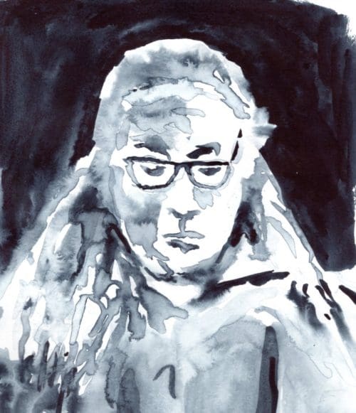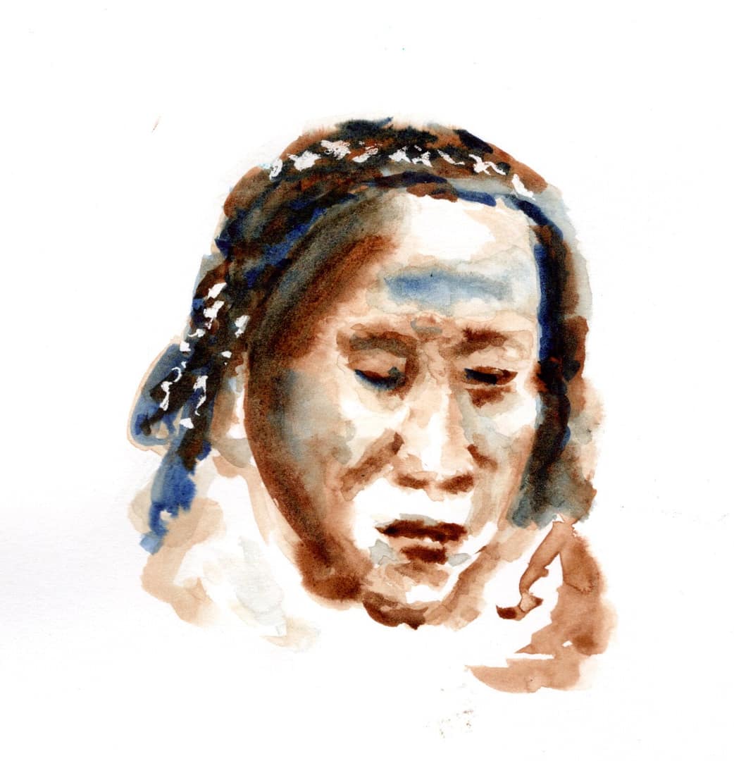 Woman with Striped Shirt, watercolor, 3 x 3 inch, 2018...