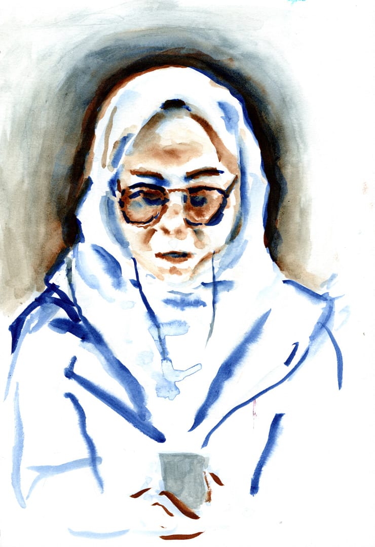Woman in hijab and sunglasses, watercolor, 8 1/2 x 6 inch, 2018...
